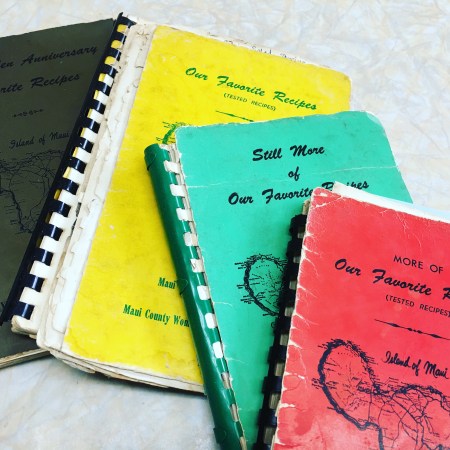 These recipe books created by the women (maybe some men) of Maui were the vertebrae of my cooking background since I first learned to cook way back in the early 70s. My first copy was the red one, then came the rest and ended with the Golden Anniversary edition.